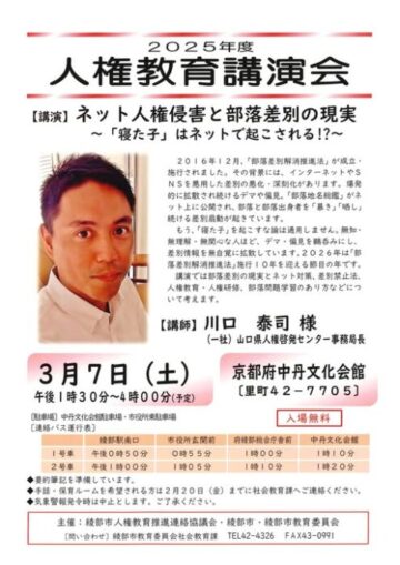 市人権教育推進連絡協議会と市、市教育委員会は、2025年度人権教育講演会を開催します。テーマ:ネット…
