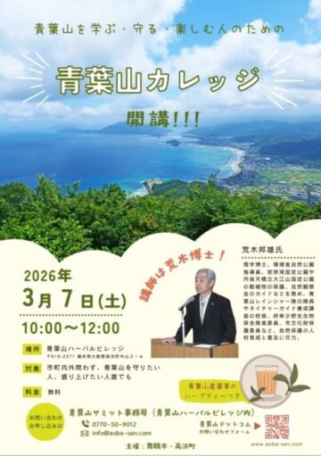青葉山を学び、守り、楽しむ人のための講演会「青葉山カレッジ」を開催します。高浜町のシンボルである青葉…