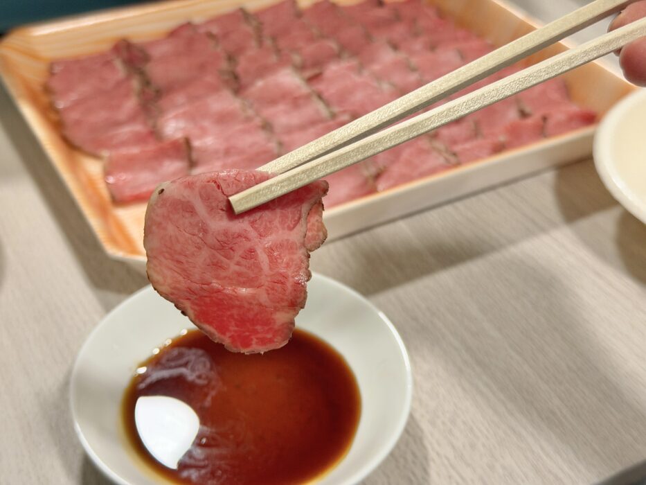 綺麗な赤ピンクがとても印象的で食欲をそそる…!そして。お肉の1枚1枚が丁寧に並べられていて品格を感じます💡