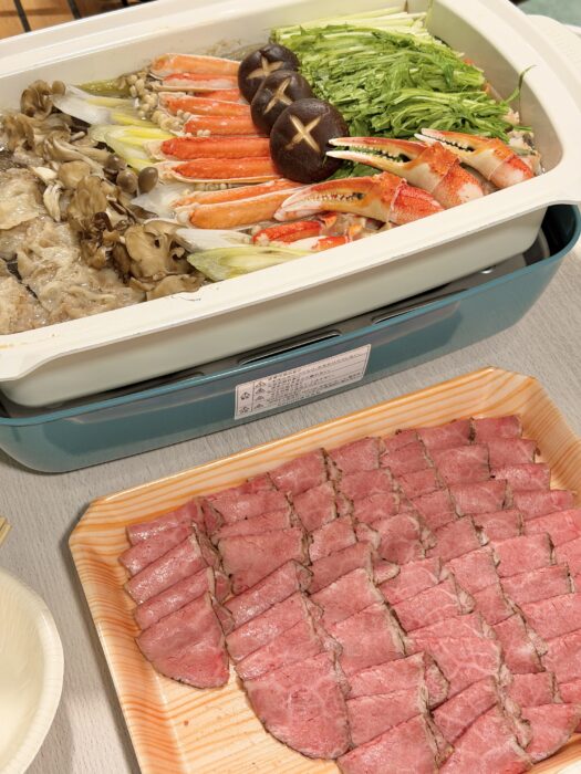 先程紹介したローストビーフと豚バラ×カニ鍋を楽しむ充実したパーティとなりました✨️