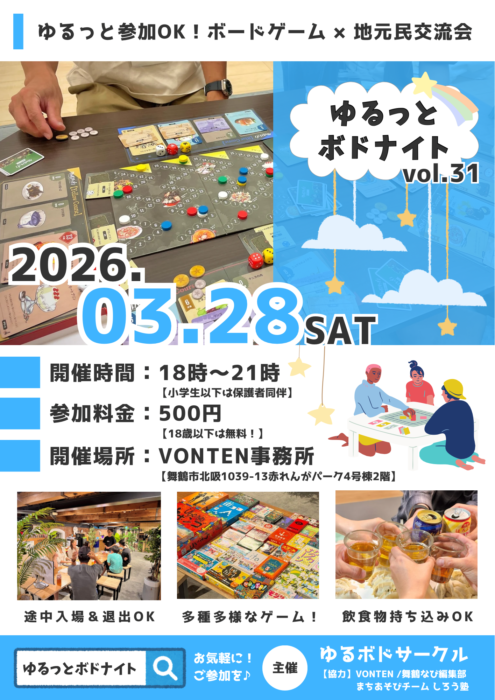 【ゆるっとボドナイト】舞鶴発!”楽しく遊ぶだけ”地域交流型ボードゲーム会