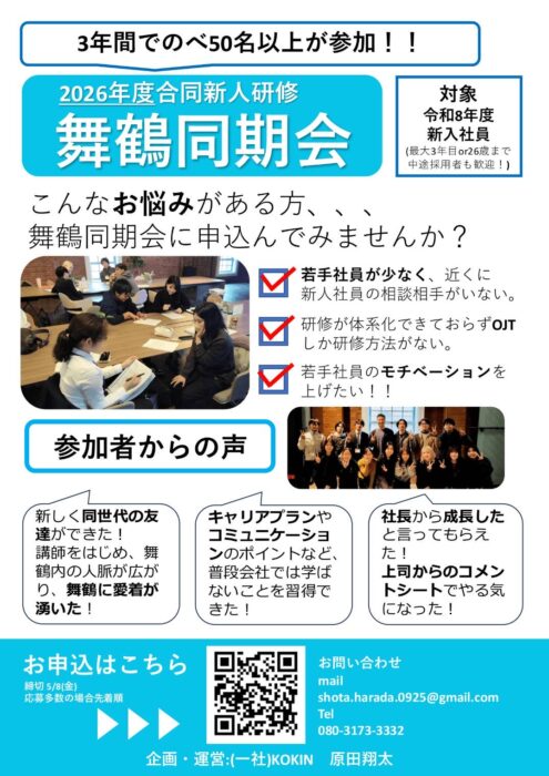 今日は僕が主催している合同新人研修 『舞鶴同期会』を紹介します!