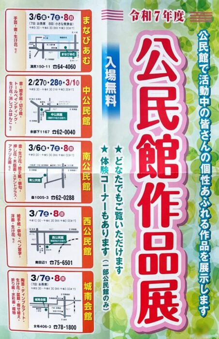 書・絵手紙・切り絵・トールペインティング・生け花・消しゴムはんこなど