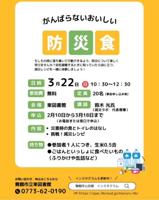 自宅避難するときに知っていたら役に立つ、減災レシピを一緒に体験しましょう!