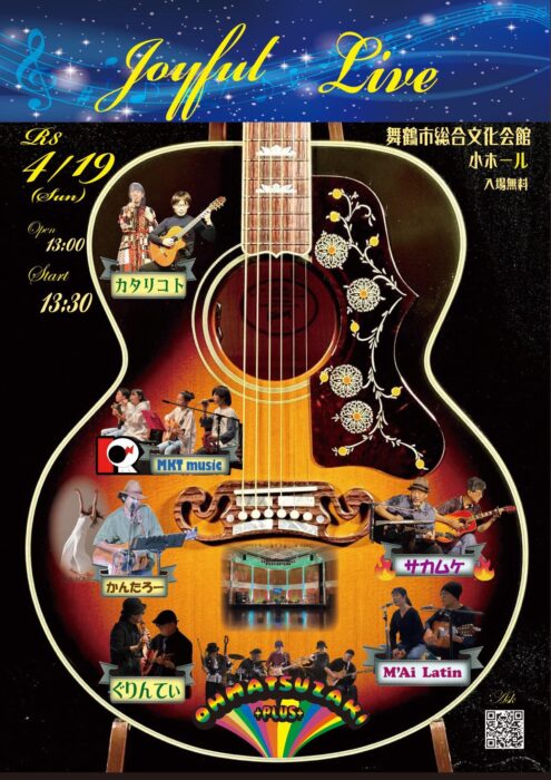 音楽を楽しむ多彩なアーティストが集うライブイベント「Joyful Live」を開催します。アコースティックからラテンまで、幅広いジャンルの演奏をお楽しみいただけます。