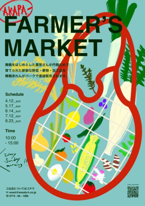 舞鶴をはじめとした農家さんが丹精込めて育てられた新鮮な野菜・果物・加工品を舞鶴赤れんがパークで直接販売されます。