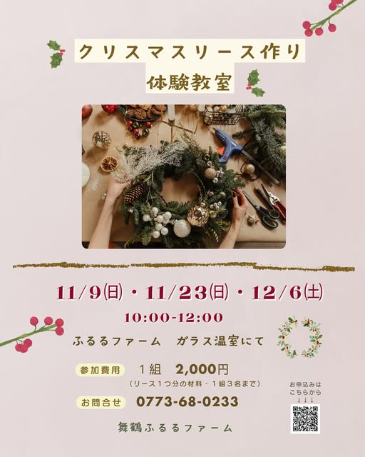 自然素材を使ってオリジナルのクリスマスリースを作りましょう! お申込みはGoogleフォームより
