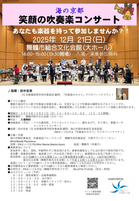 複数の楽団や大人数で吹奏楽の演奏を楽しみ、交流することで吹奏楽の裾野を広げるイベントです。どなたでもイベント当日に楽器を持参し、事前練習無しでも気軽に大ホールのステージ演奏に参加頂けます。