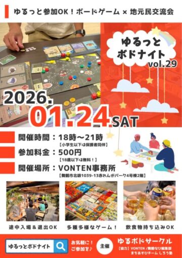 誰でも参加OK&ゆるっと楽しむボードゲーム会! 参加料金:500円 ・途中入場&退出OK ・多…