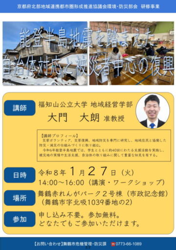 【対象者】 京都府北部5市2町及び京都府の防災・環境・農林・建設・被災者支援関係の職に従事する職員及…